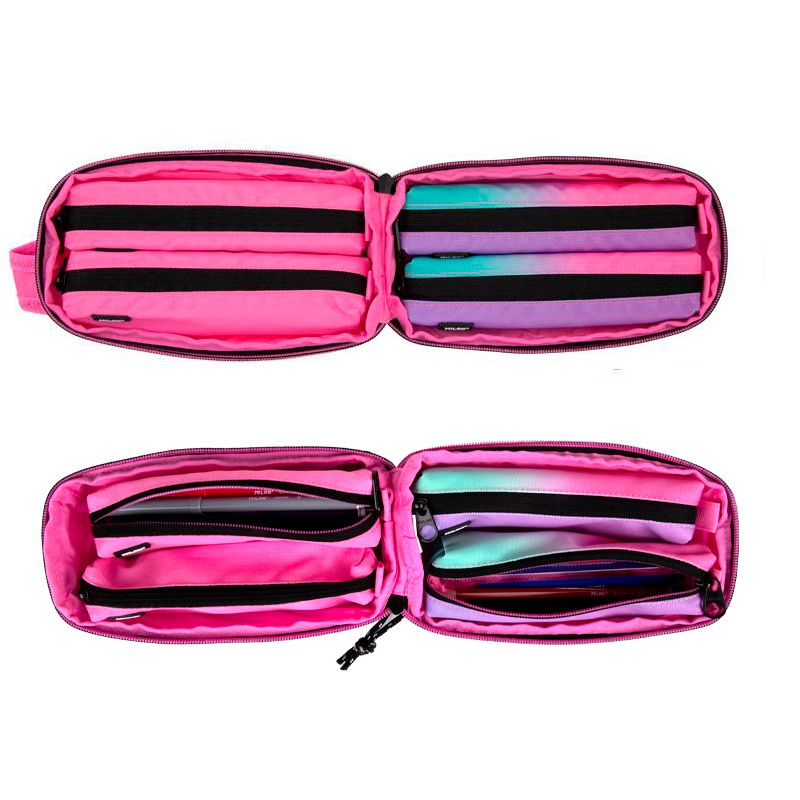 ESTUCHE P/LAPIZ MILAN 4 COMPARTIMENTOS SUNSET ROSADO C/ACCESORIOS